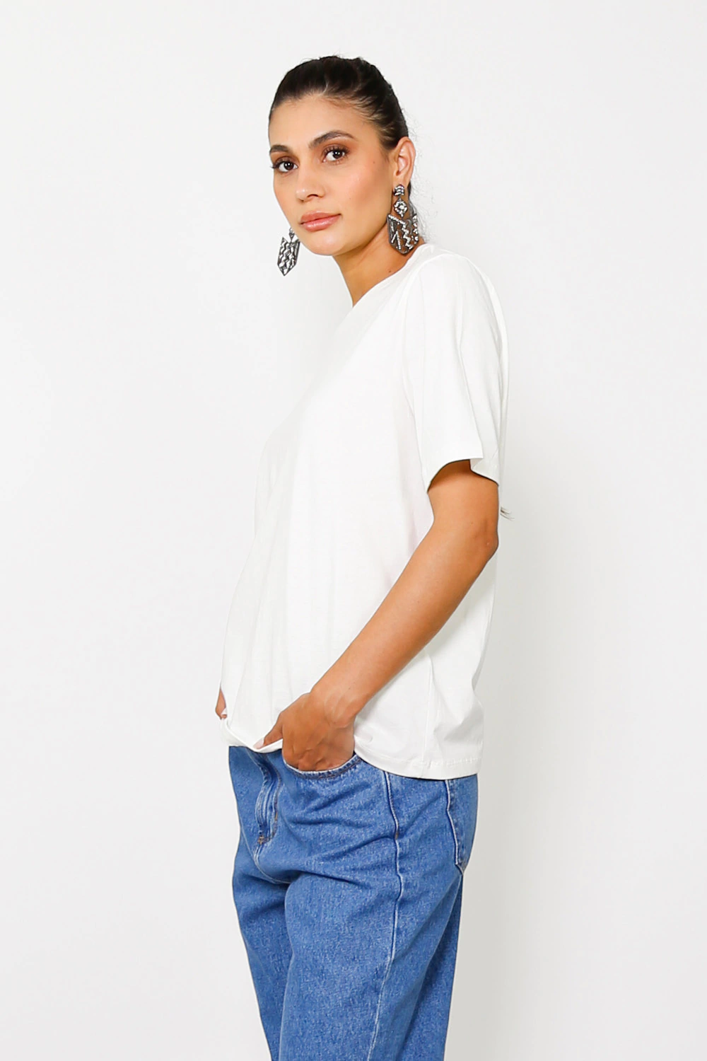 Camisa Cropped de Algodão Bolso Deslocado Branca